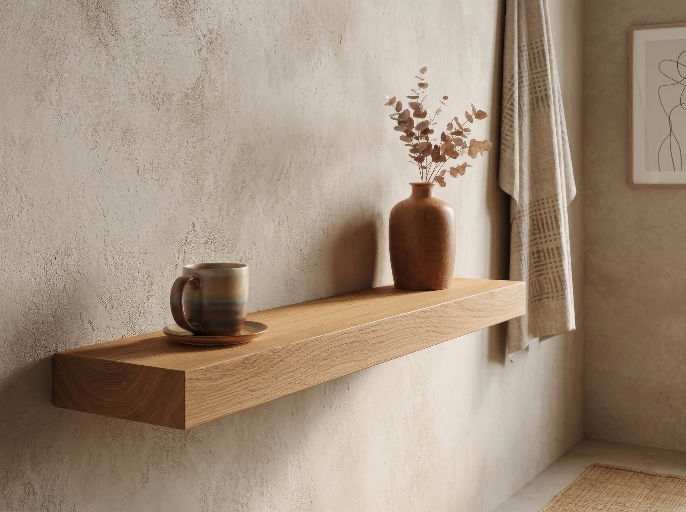 We also cater to tricky spaces: choose custom oak alcove shelves or opt for our bracketed thin oak shelf if you prefer exposed fixings. No matter the space, you’ll find an elegant, durable shelving solution crafted to your needs.