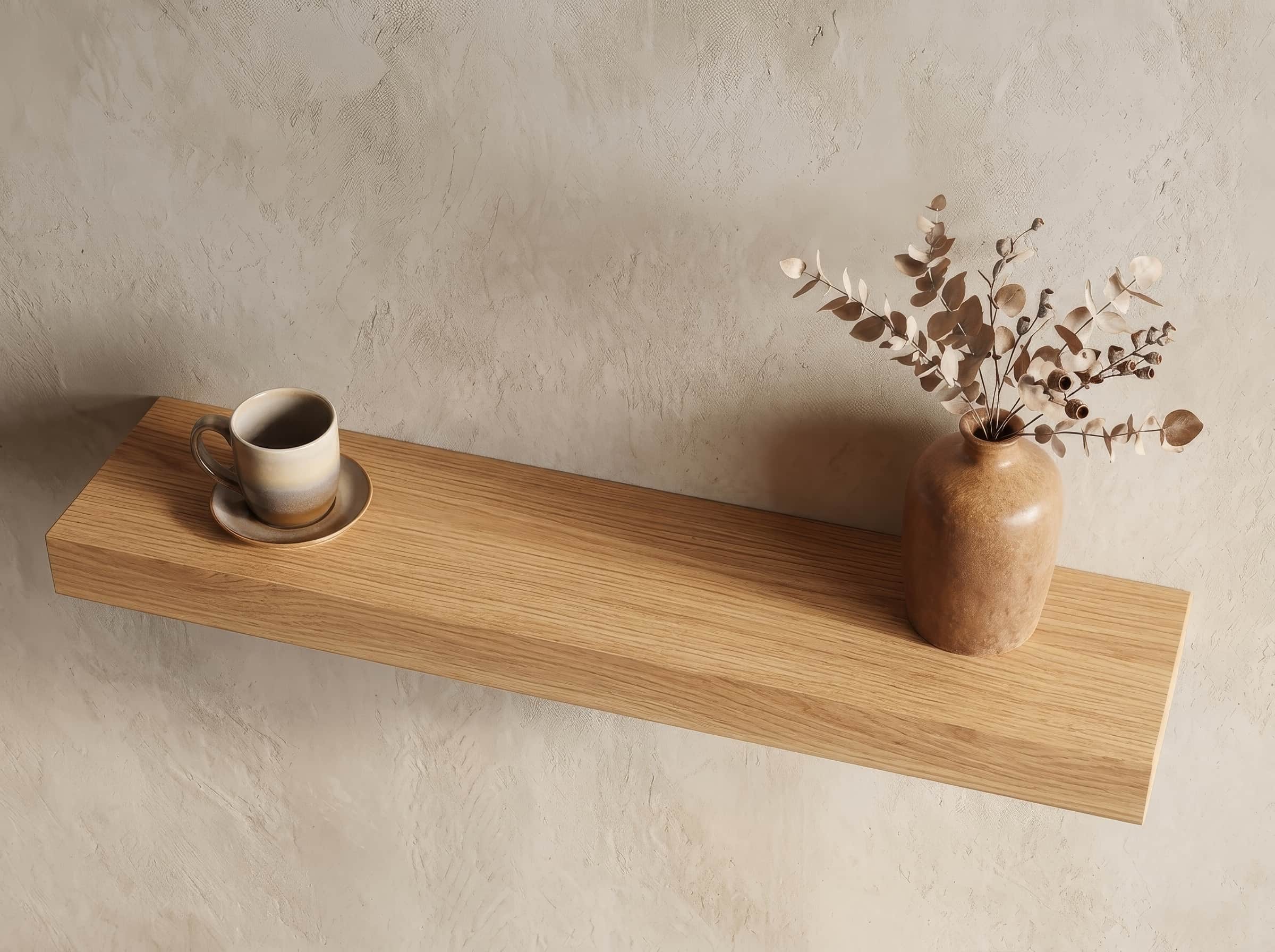 Solid Oak Floating Shelves crafted from a single piece of oak, sanded and ready to install with optional floating fixings.