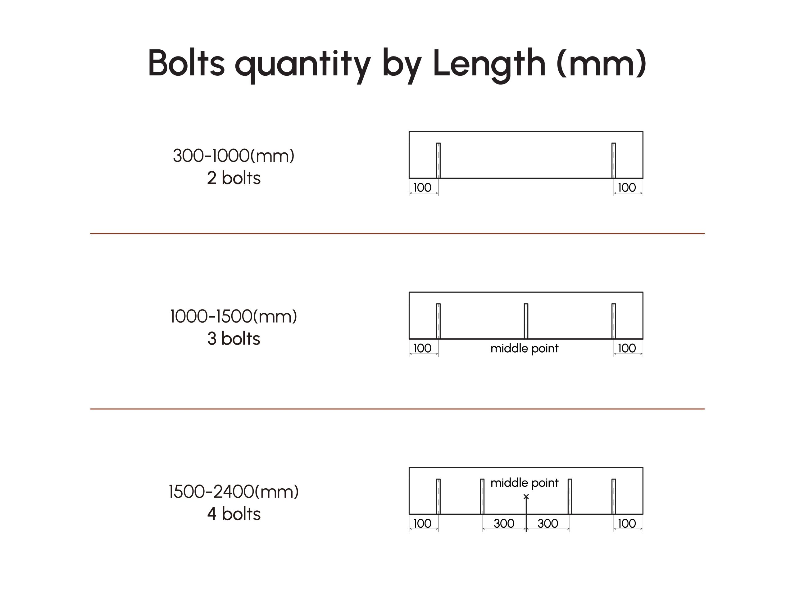 Floating shelf design – pre-drilled holes with concealed fixings available for a minimalist look