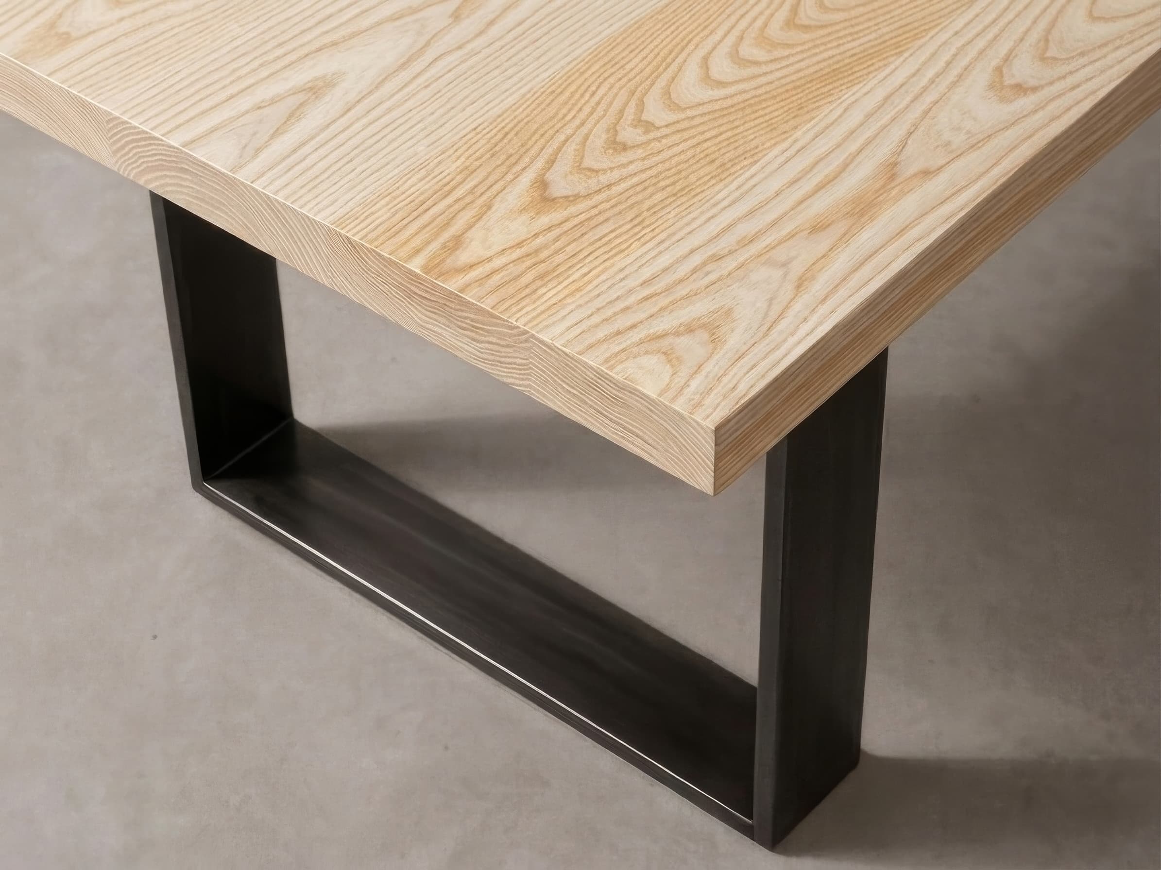 Full stave solid ash tabletop, handcrafted to exact measurements and sanded with smooth, softened edges.
