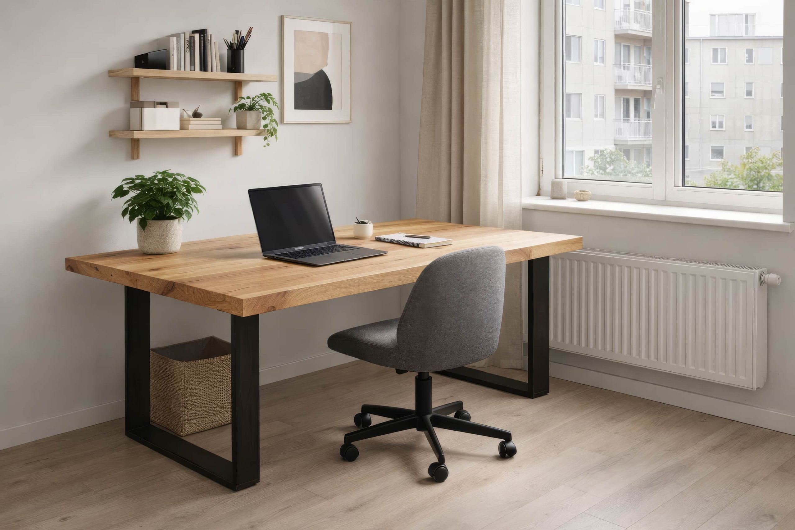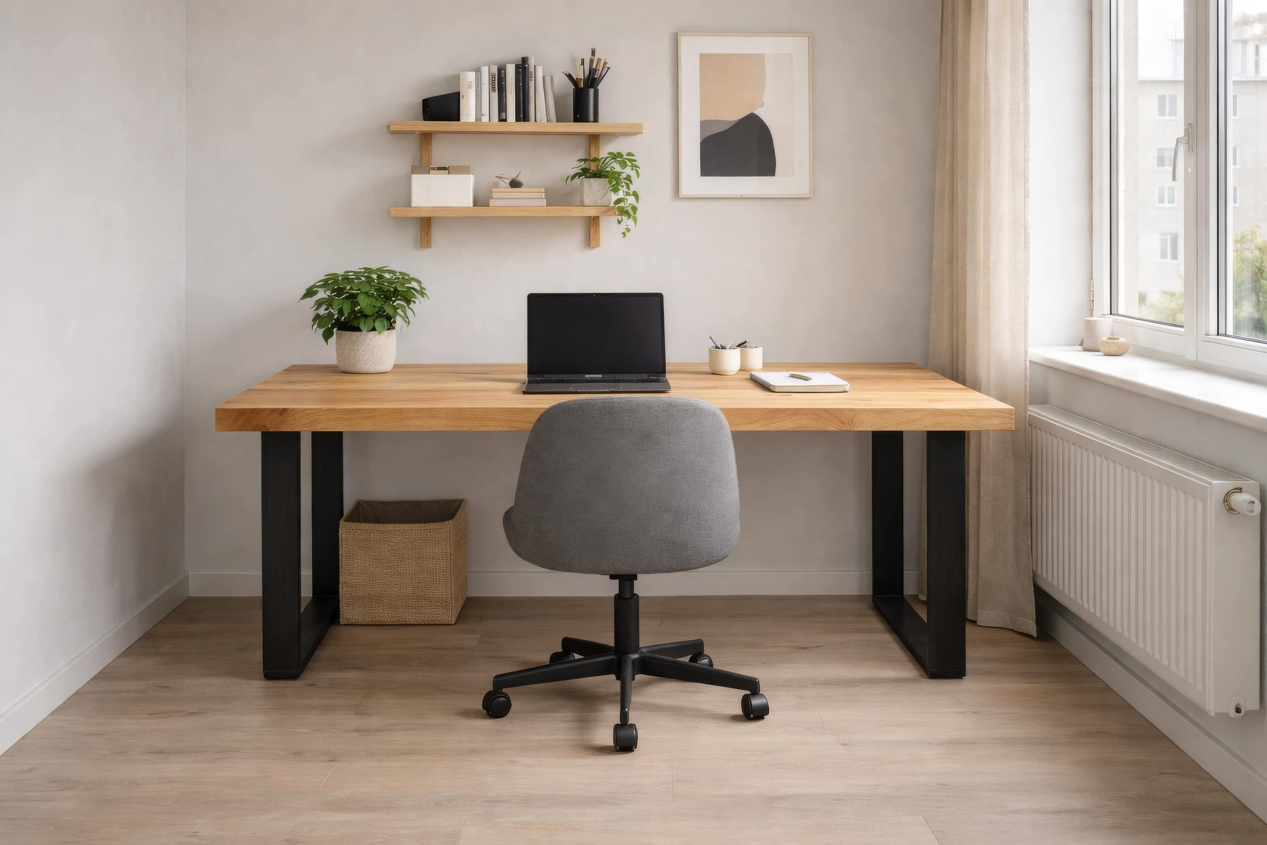 Full stave Prime solid oak desk, handcrafted to exact measurements and sanded with smooth, softened edges.