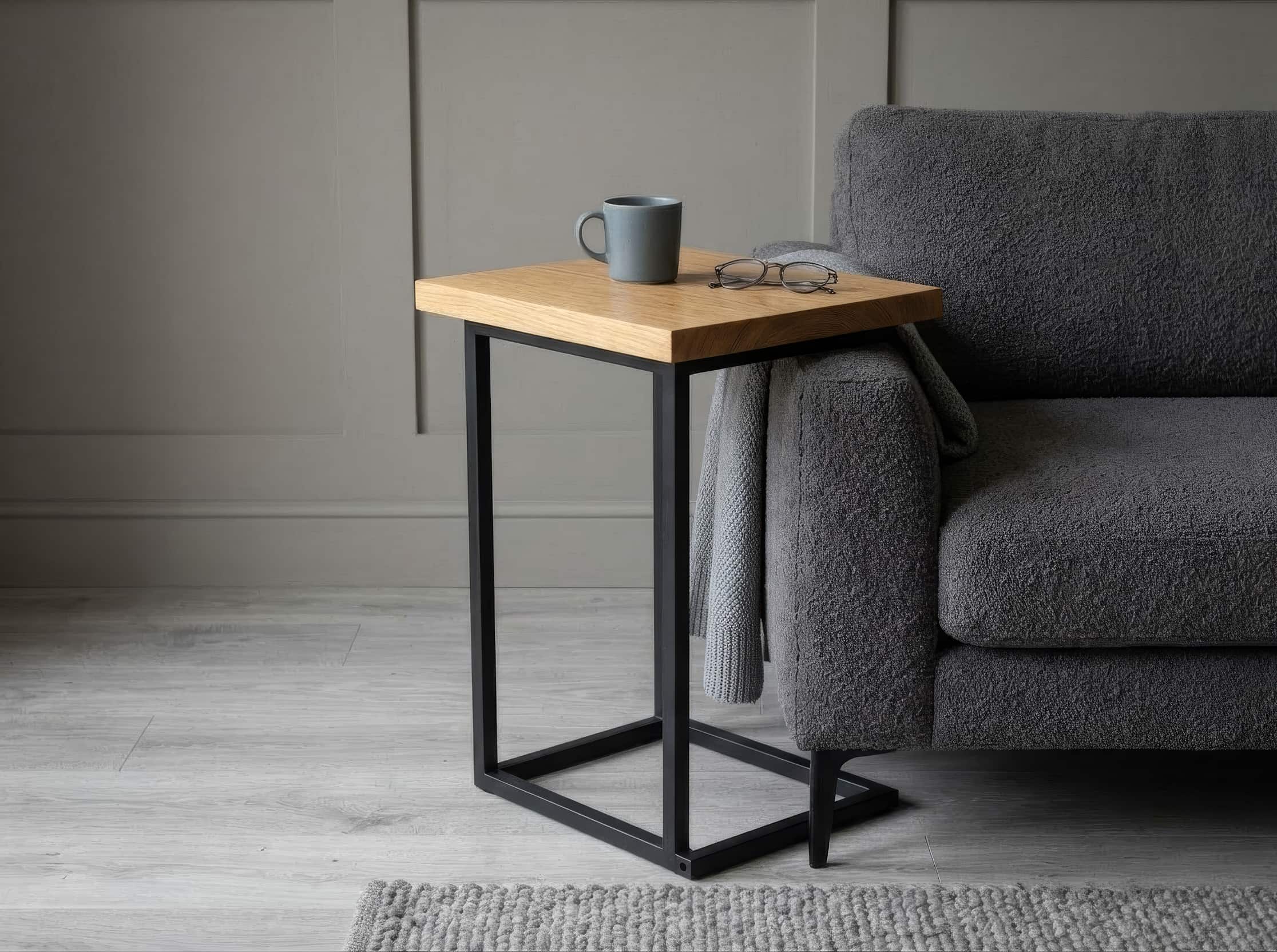 Full stave solid oak side table, handcrafted to exact measurements and sanded with smooth, softened edges.