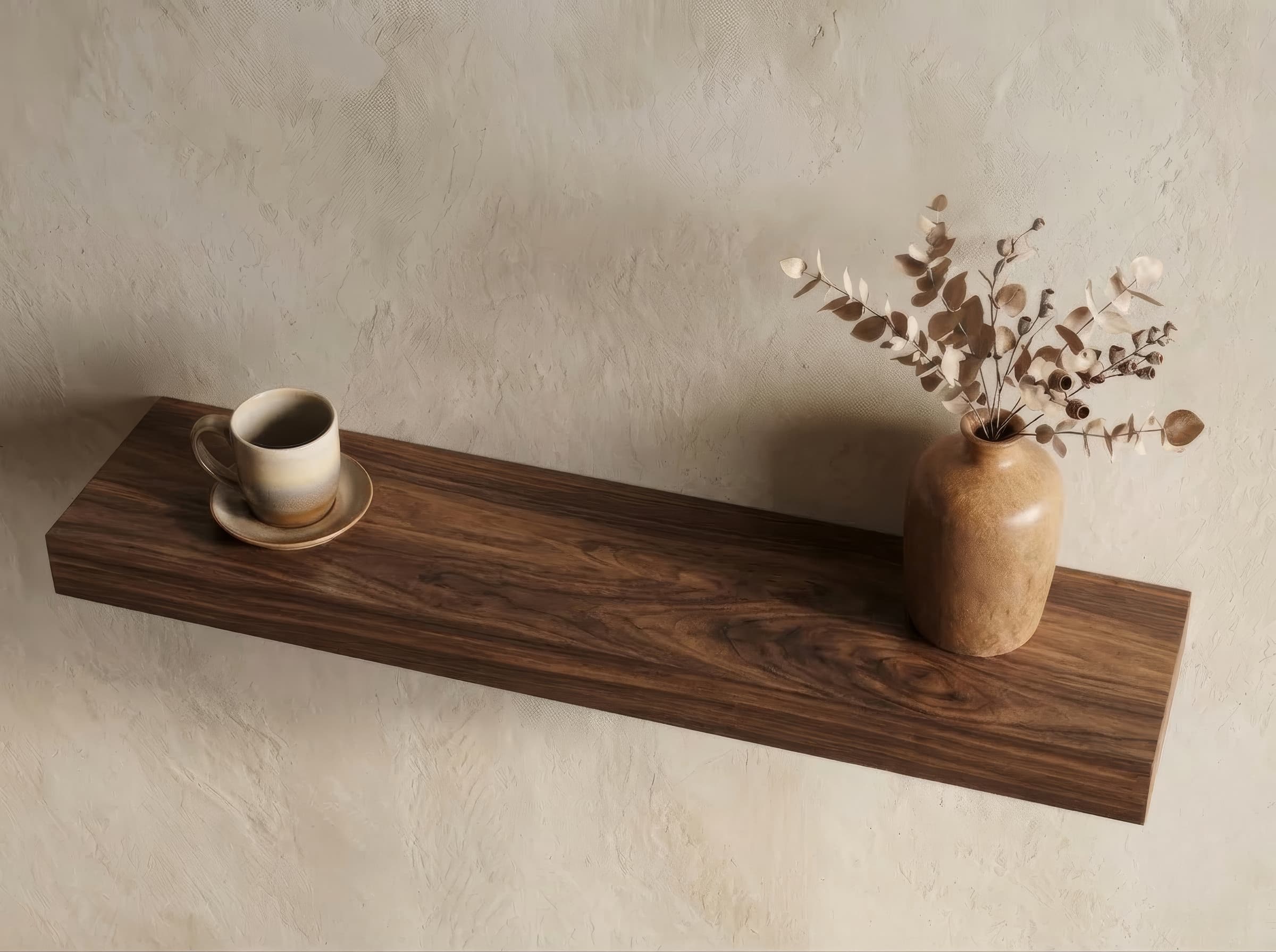 Transform your interior with our solid walnut floating shelves, designed to elevate any room with timeless appeal. At Planks, we specialise in real walnut shelves that celebrate the beauty of natural grain and rich, warm tones. Every shelf is crafted from 100% solid walnut — never veneer — giving your space depth, strength, and character.