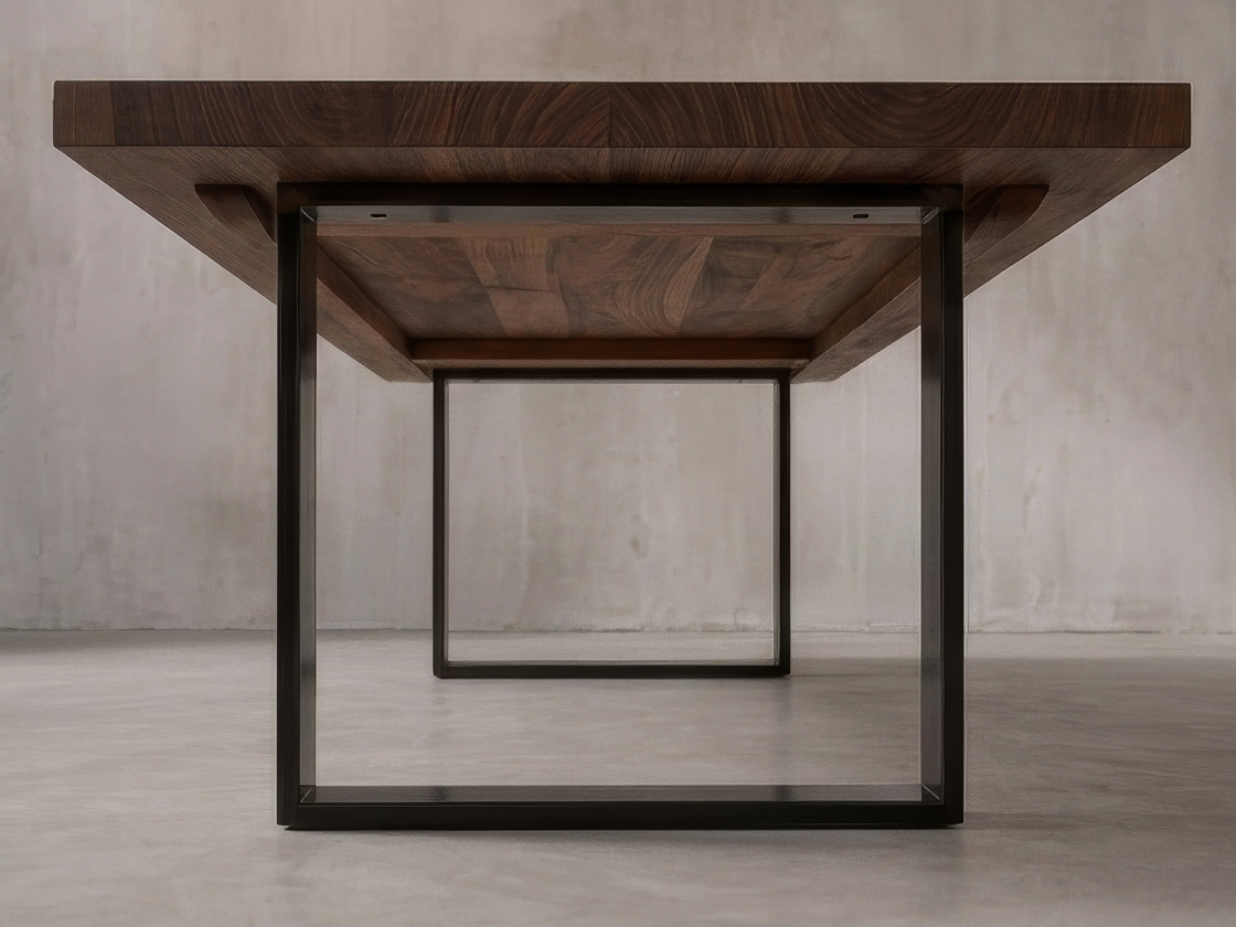 Full stave solid walnut tabletop, handcrafted to exact measurements and sanded with smooth, softened edges.